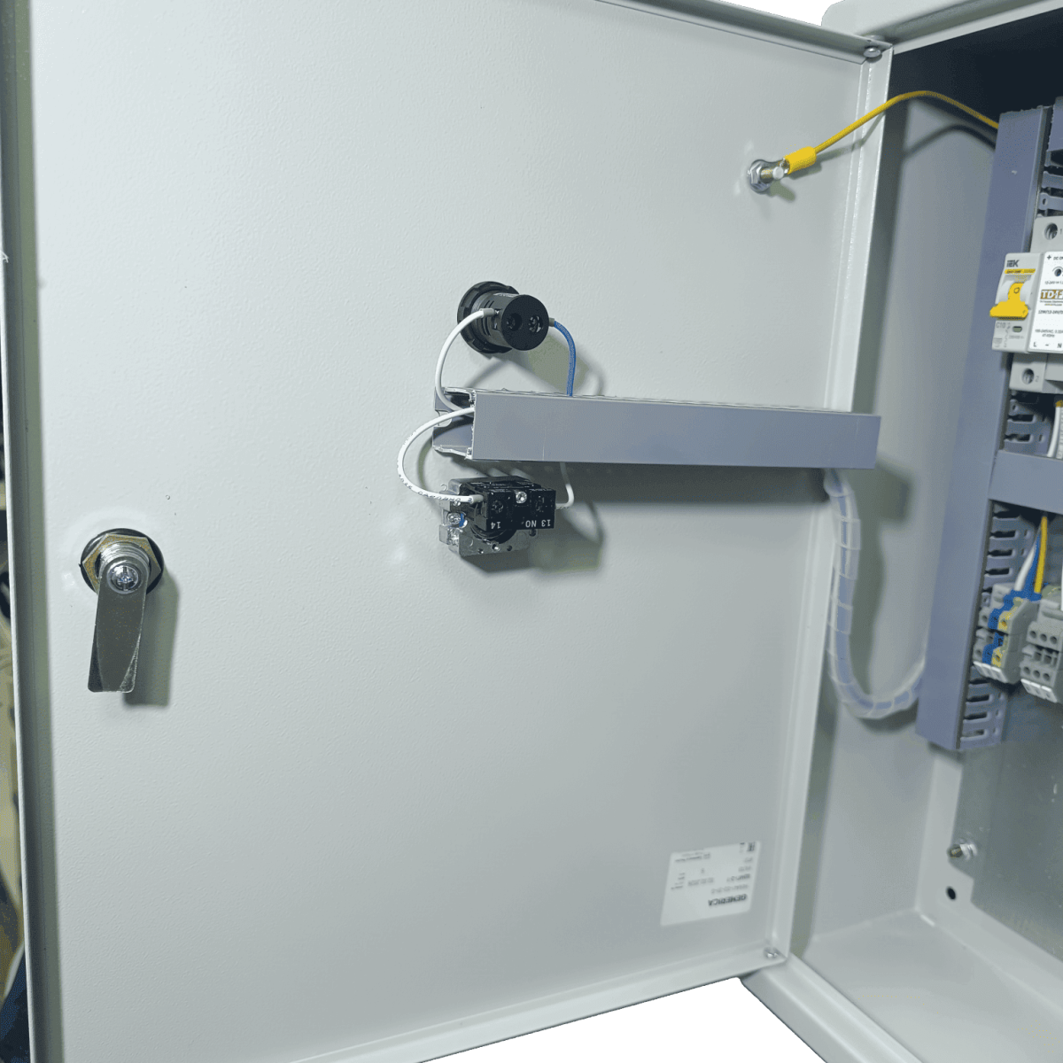В щите предусмотрен вывод сигналов GSM модулем удаленной диспетчеризации (только на уведомление о состоянии работы котельной).